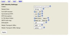 - RTP Encryption – Off