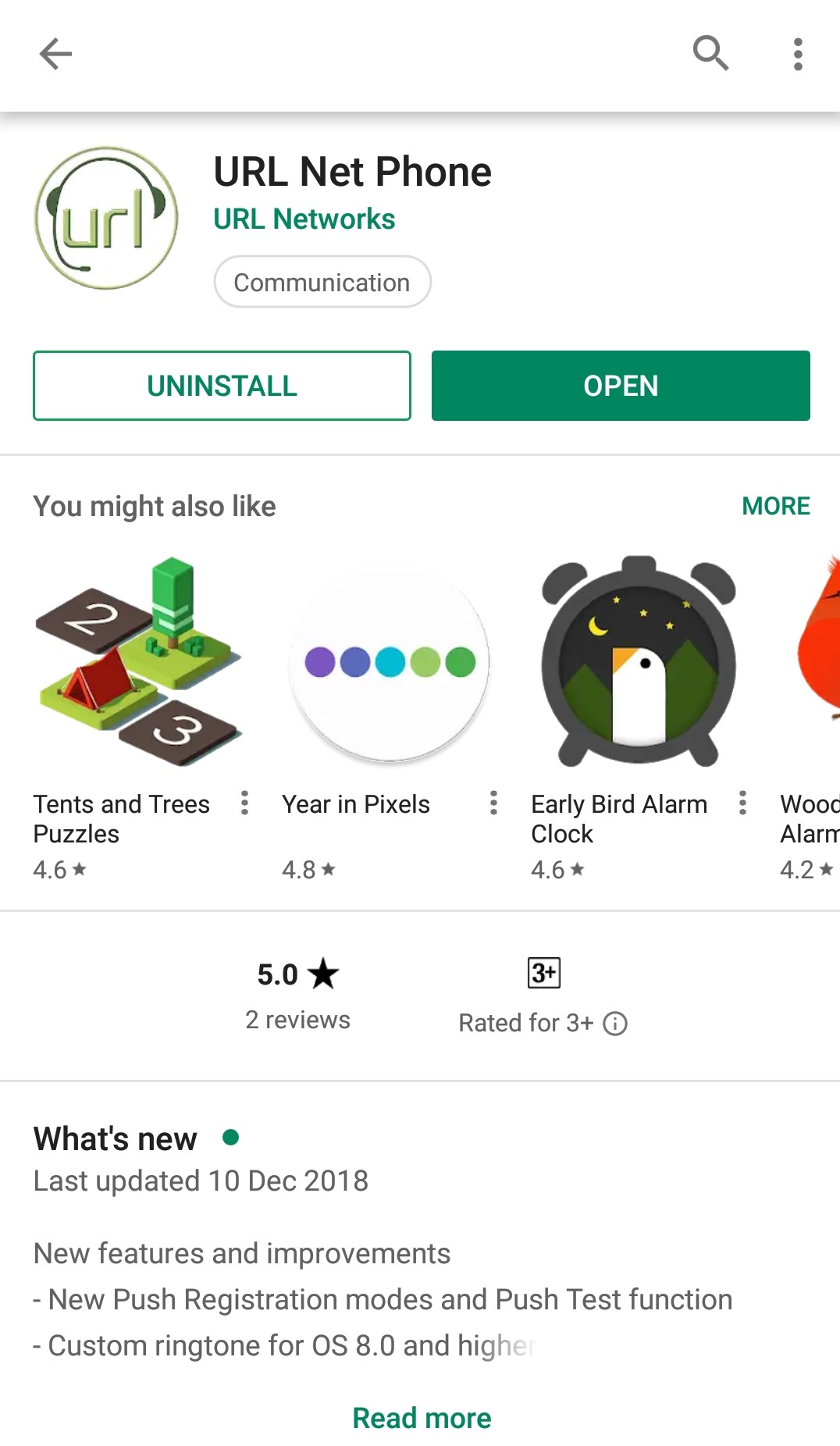 4. Once installed, tap the Open Button to launch the URL Net Phone app.