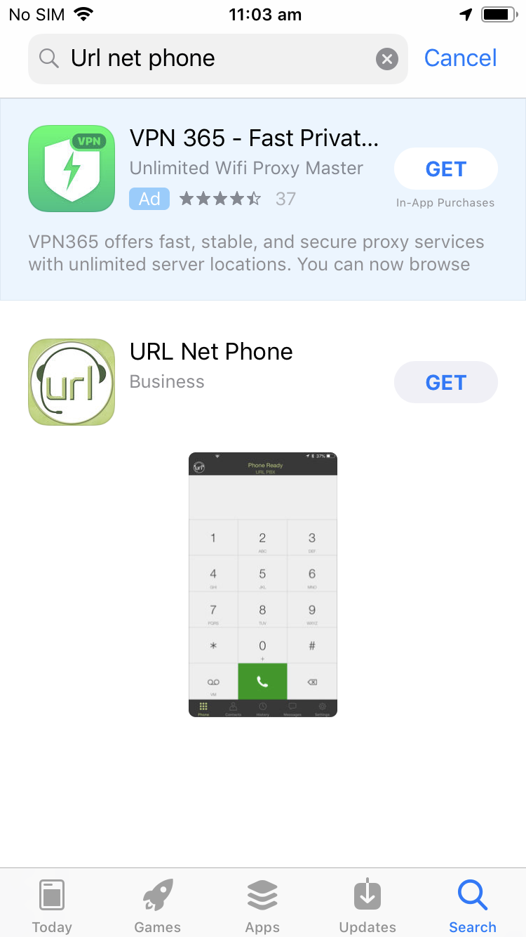 2. Search for "URL Net Phone" and install the app as it appears below.