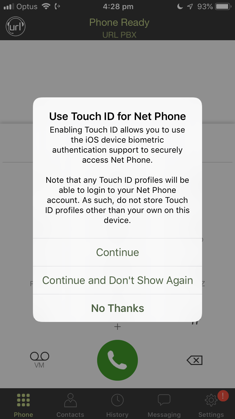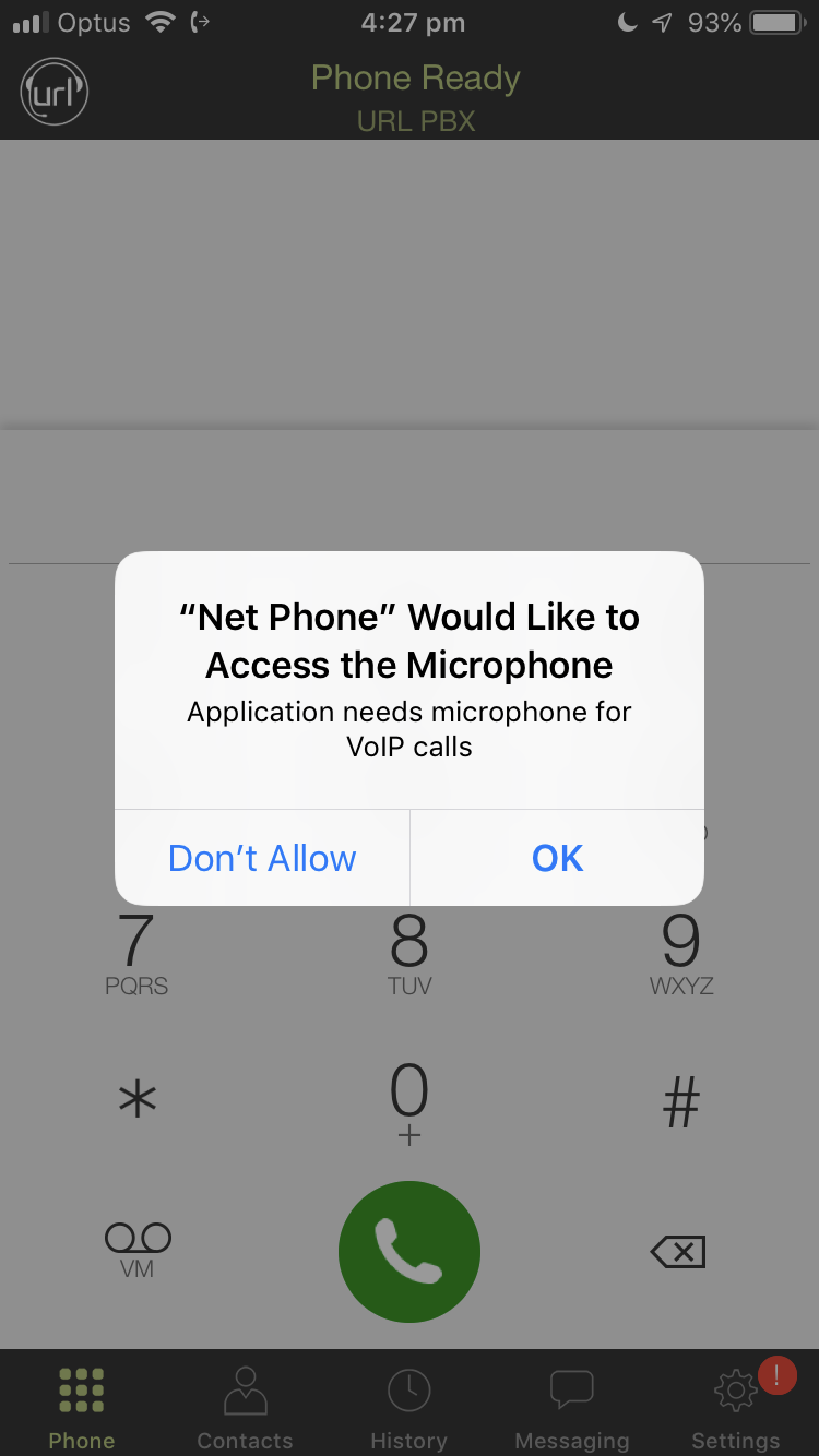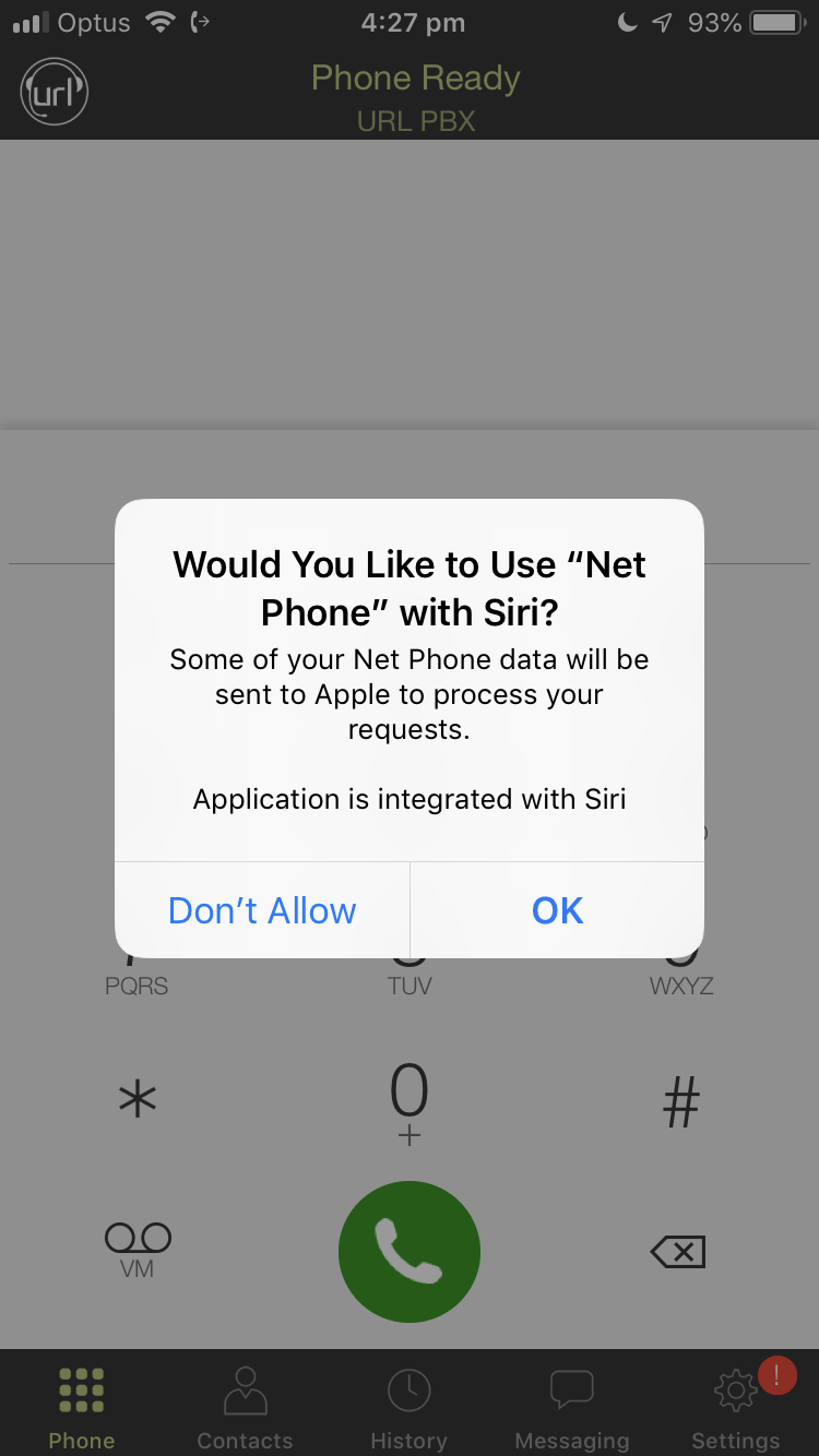 4. You will be prompted to allow the Net Phone access to your microphone, camera, Siri and Touch ID (Depending on device). Please allow the URL Net Phone access to these features.